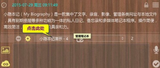 筆記本管理頁面中,每個筆記本以圖標(biāo)的形式排列在頁面上方。雙擊某個筆記圖標(biāo)可直接打開之(將其加載到主界面)。按ESC鍵則返回上一頁(移動設(shè)備則是按home鍵或返回鍵)。其他頁面同此。