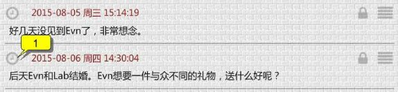 右數(shù)第二個(鎖):給該筆記加鎖/解鎖。加鎖后,主界面中該筆記的內(nèi)容將不予顯示(代之以所指定的顯示文本)??稍凇跋到y(tǒng)設(shè)置”頁面中設(shè)置開鎖密碼(初次使用的默認(rèn)開鎖密碼為空)