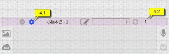 輸入?yún)^(qū)左上是圖像圖標(biāo),可插入本機(jī)已有的圖像。左下是鏈接圖標(biāo),可插入/管理一個網(wǎng)址鏈接或本地文件鏈接。右上是錄音及音頻管理圖標(biāo),點(diǎn)擊后自動開始錄音,或管理已有錄音。右下是發(fā)布圖標(biāo),點(diǎn)擊后發(fā)布一條新筆記(如果尚未輸入日記內(nèi)容,也沒有附加圖像、錄音、鏈接等數(shù)據(jù),則該圖標(biāo)不可用)。輸入?yún)^(qū)中間部分為文本區(qū)。