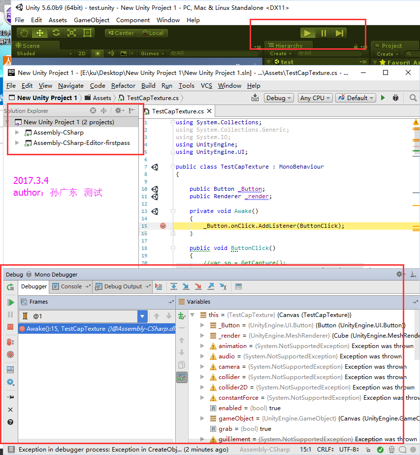 由于集成的雙向通信,無需離開Rider,您即可切換進(jìn)出Play模式,暫停,和逐幀執(zhí)行!工具條包含游戲視圖按鈕Play、Pause和Step,分別對(duì)應(yīng)UnityEditor中的相同按鈕,并且與UnityEditor中的按鈕控制相同的行為操作。狀態(tài)欄上的Unity小圖標(biāo)將顯示UnityEditor是否已經(jīng)連接,正在刷新或在Play模式。在Rider處于Edit模式下的任何變更都將立刻提交UnityEditor。