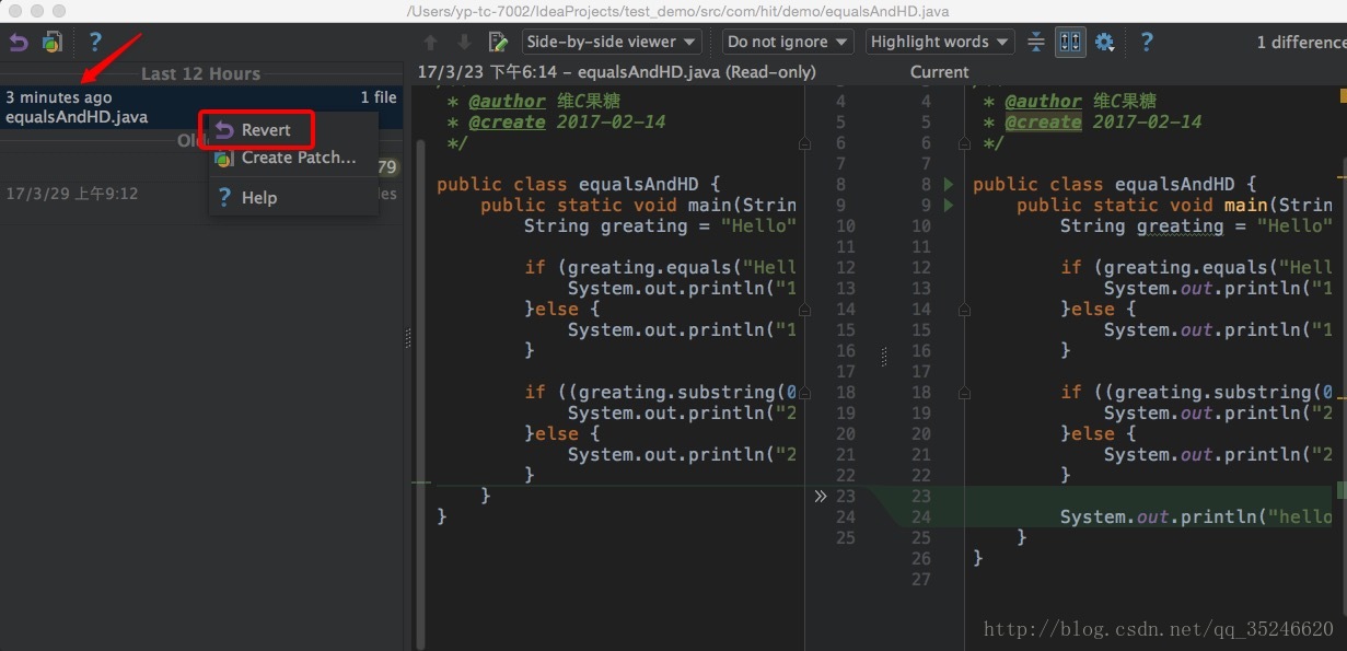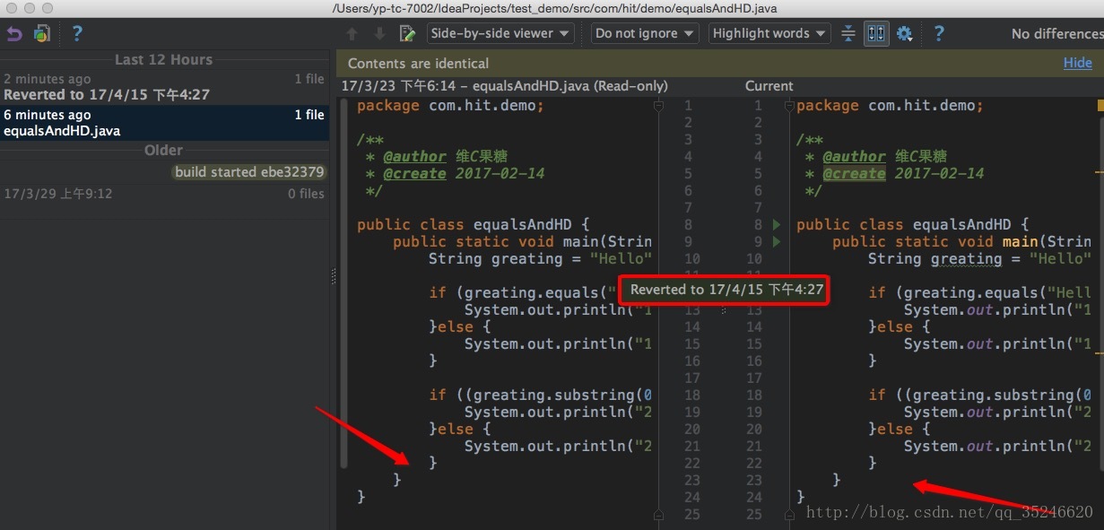 如上圖所示,顯然咱們的操作成功了,代碼已經(jīng)恢復(fù)至前一版本啦!