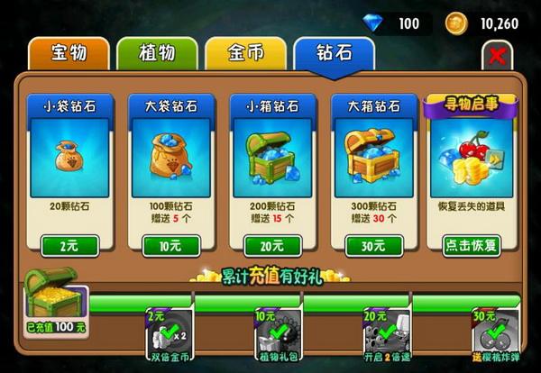 鉆石:國際版里面可以在游戲關卡中臨時獲得,可以讓植物迅速的增長,中文版里只能內(nèi)購獲得。