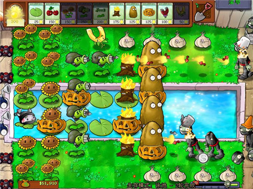 獨(dú)特的五種游戲模式:冒險(xiǎn)、小游戲、解密、生存、花園。冒險(xiǎn)模式多達(dá)50個(gè)的關(guān)卡設(shè)定,從白天到夜晚,從泳池到房頂,場(chǎng)景變化多樣。