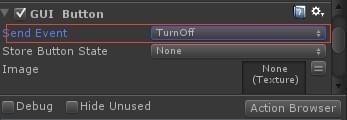 點(diǎn)擊ActionBrowser,添加GUIButton和SetLightIntensity,并設(shè)置相關(guān)屬性:設(shè)置按鈕的位置和大小和設(shè)置燈光的燈亮強(qiáng)度(這里燈光強(qiáng)度為0)