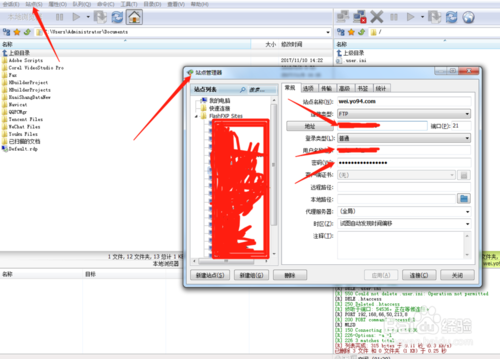 打開FlashFXP或者其他的FTP工具,在FTP上連接到站點空間