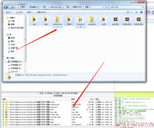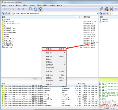 打開微擎的文件夾 選中所有文件,將文件拖拽到FTP任務(wù)欄中,并右鍵點擊傳輸將文件傳輸?shù)秸军c根目錄