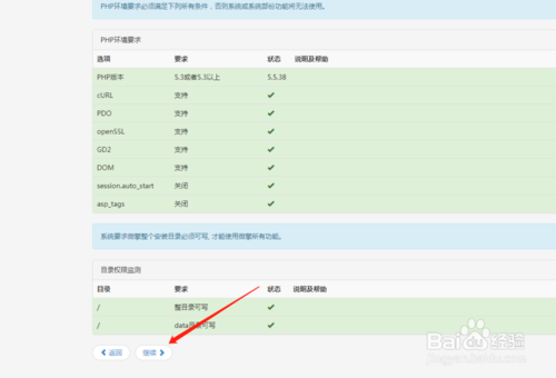 將域名解析到空間,打開訪問https://你的域名/install.php 打開后點擊我以閱讀,并點擊繼續(xù)進入下一個頁面,點擊繼續(xù)