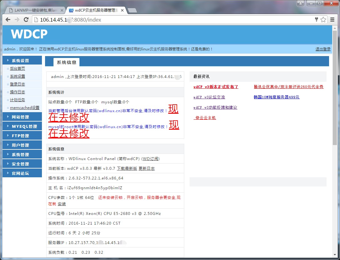 2:登陸后首先修改默認的密碼,如圖