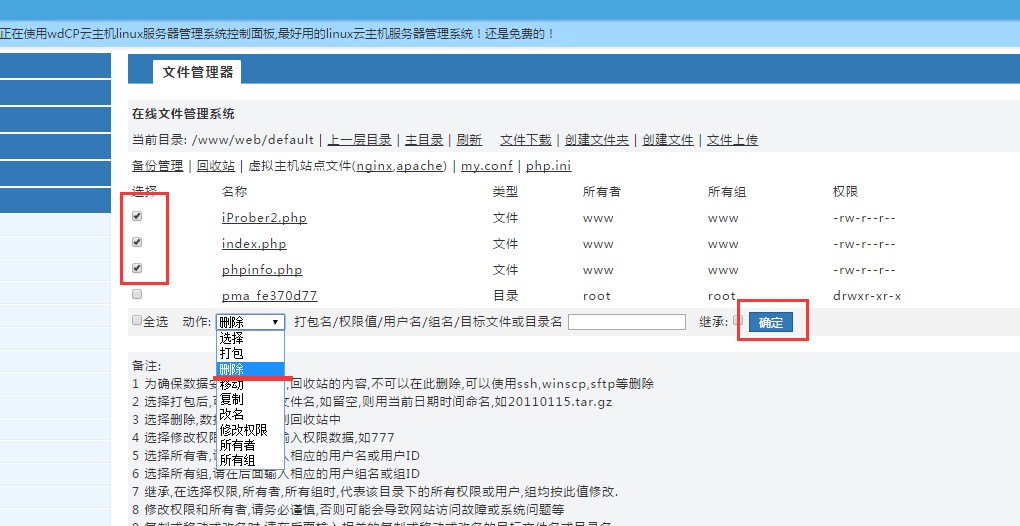 7:刪除環(huán)境信息:點擊站點列表—文管—上一層目錄—default—刪除