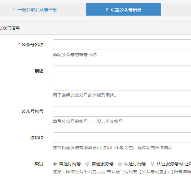 微擎雙向綁定方法1、在微擎系統(tǒng),添加公眾號,輸入自己的公眾號和密碼一鍵獲取公眾號信息,或者自己填入公眾號信息。