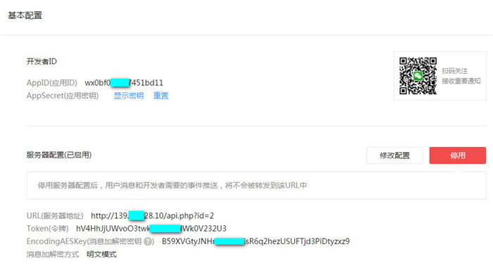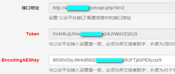 其中,URL、Token、EncodingAESKey要和微擎中一致。