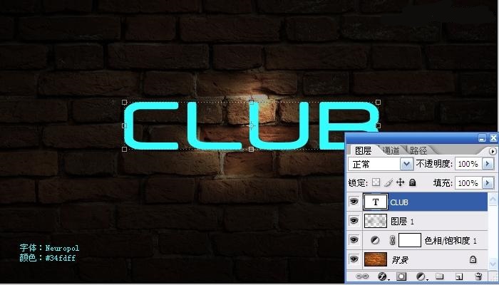 用Photoshop軟件怎么制作墻壁上的霓虹字?