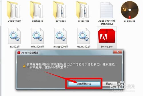自 Illustrator CS3以后,它都會有提示計算機(jī)重新啟動操作可能處于掛起狀態(tài),點 忽略并繼續(xù)