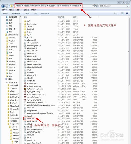 找到 Illustrator安裝目路,把剛才復(fù)制的amtlib.dll粘貼進(jìn)來,替換原有的