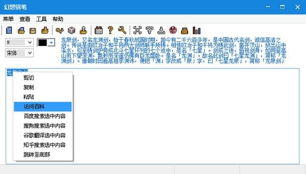 內(nèi)置資料/抓取百科數(shù)據(jù):選中文本可自動(dòng)搜索并顯示,右鍵菜單選項(xiàng)選擇可自動(dòng)抓取百度百科數(shù)據(jù)并輸出到軟件界面作為參考。