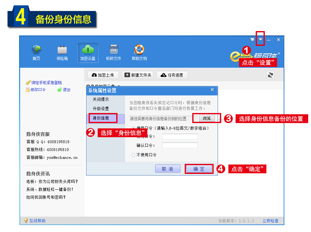 隱身俠,它能輕松保護(hù)和備份電腦、移動(dòng)硬盤、U盤里的重要資料和“小秘密”。隱身俠防泄密、護(hù)隱私,讓“我的東西”別人看不到,自己丟不了。