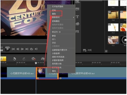 然后選擇你需要剪輯出去的視頻內(nèi)容,右擊選擇“刪除”,點(diǎn)擊一下