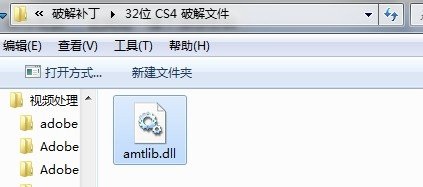 1.激活成功后就是對程序進行破解,如果不破解一天后就無法使用了。打開剛才解壓文件夾中的 破解補丁/32位 CS4 破解文件 ,把里面的amtlib.dll文件復(fù)制。