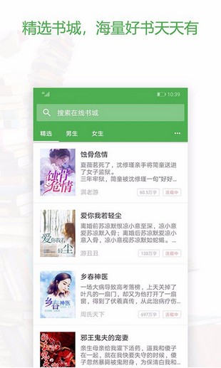 【精選圖書】無(wú)論小眾大眾,冷門熱門,小資簡(jiǎn)約,所有你想要的書籍暢讀無(wú)門檻,high起來(lái);【高清設(shè)置】護(hù)眼模式、仿真等多翻頁(yè)效果、自定義閱讀設(shè)置,統(tǒng)統(tǒng)幫你搞定;