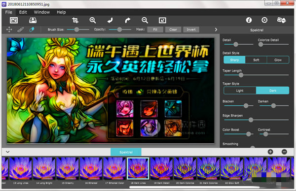 包括一個插件,允許快速訪問SpkTrl藝術(shù)從PS圖象處理軟件,元素,LytRunm和PruttSoalPro。支持動作、透明度、混合、最后的過濾命令、批處理和16位RGB/灰度模式。