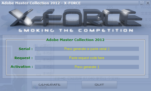 4、輸入軟件的serial和request值,點擊“generate”即可獲取adobe cs6序列號。