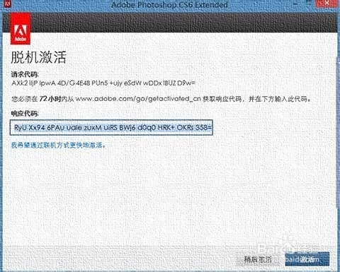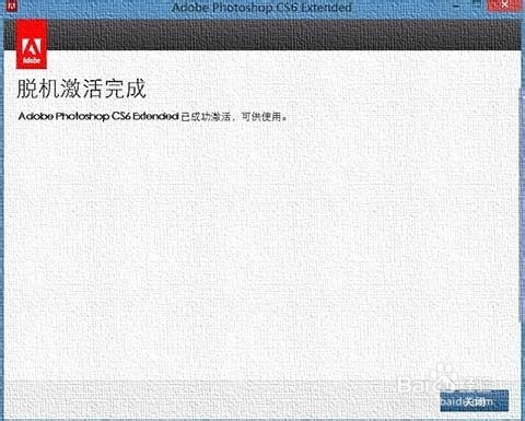 4、脫機激活A(yù)dobe Photoshop CS6 Extended成功,到這里還沒完成。