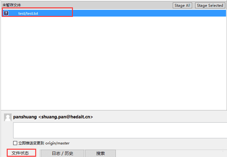 之前已經(jīng)介紹過未進(jìn)行版本控制的或者受版本控制的文件,在sourcetree的“文件狀態(tài)” 標(biāo)簽中查找,如圖所示: