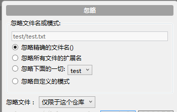 鼠標(biāo)右鍵要忽略的文件,點(diǎn)擊“忽略”,選擇忽略的模式,即可將文件進(jìn)行忽略,如圖所示: