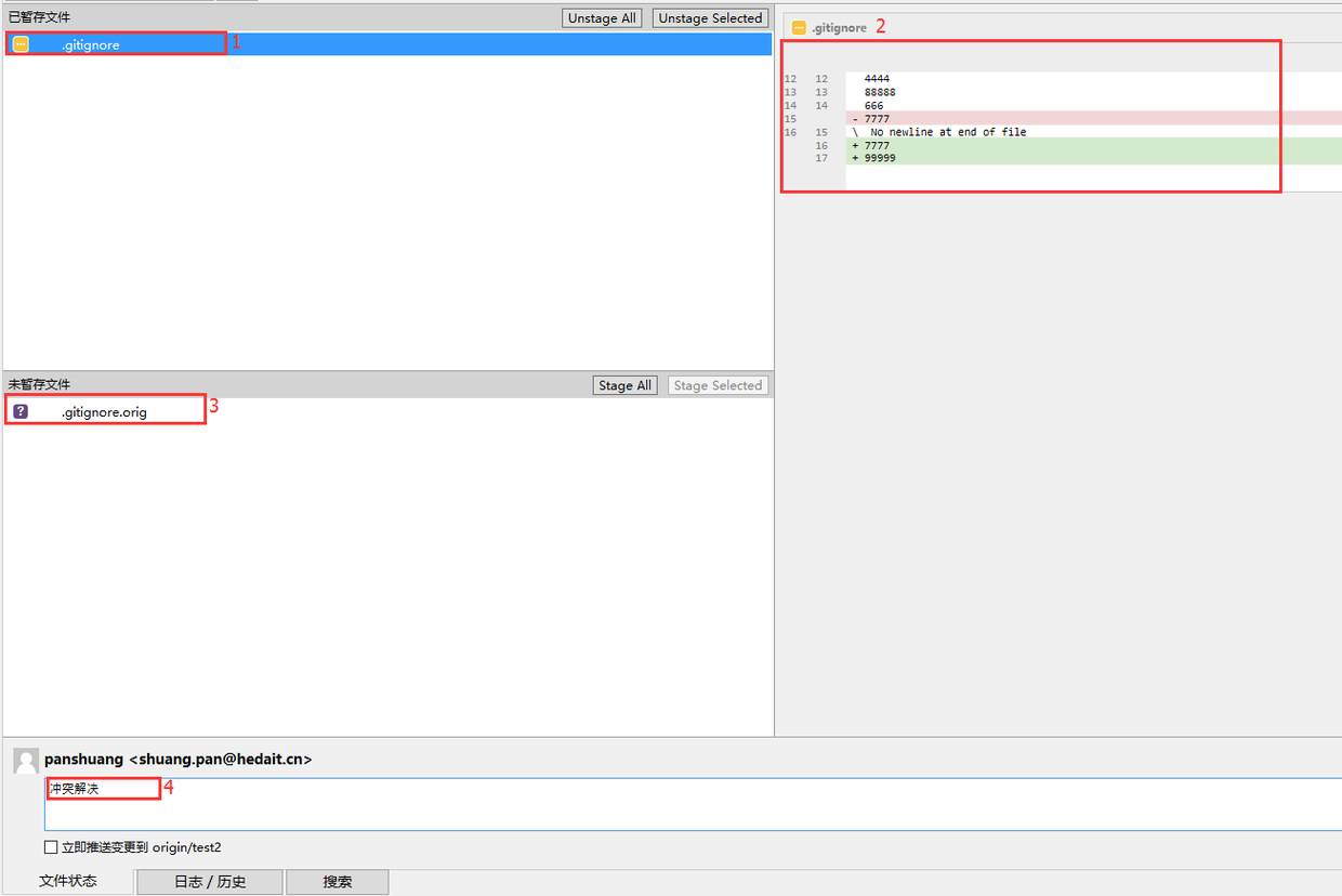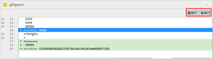 3、選擇沖突內(nèi)容,解決沖突,如圖所示: