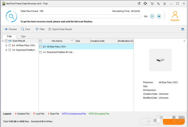 完美的表現(xiàn)MiniTool Power Data Recovery 可以從硬盤,USB 驅(qū)動(dòng)器,存儲(chǔ)卡,RAID 和其他存儲(chǔ)設(shè)備中恢復(fù)文檔,圖片,視頻,音頻,電子郵件和其他數(shù)據(jù)。 它可以恢復(fù)刪除的數(shù)據(jù),從格式化/損壞/RAW/丟失的分區(qū)中恢復(fù)丟失的數(shù)據(jù),并在系統(tǒng)崩潰,硬盤錯(cuò)誤或故障,病毒攻擊,意外斷電等情況下恢復(fù)數(shù)據(jù)。