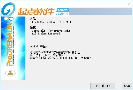 1、在本站下載安裝的文件,得到rar文件,解壓以后打開prodrenalin-10-full64bit.exe程序,可以進(jìn)入安裝的過程