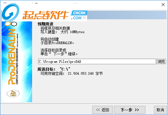 3、這里就是軟件的安裝路徑選擇區(qū)域了C:\ProgramFiles\proDAD,可以不用修改,默認(rèn)就好