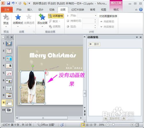 4、進入另外一張幻燈片上,將鼠標指針指向圖片,并點擊圖片,這個時候是不是發(fā)現(xiàn)這張原本沒動畫效果的圖片有了動畫呢?同時鼠標指針右邊的刷子圖案會消失。
