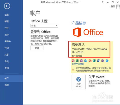 新建一個word文件、然后打開查看激活狀態(tài)