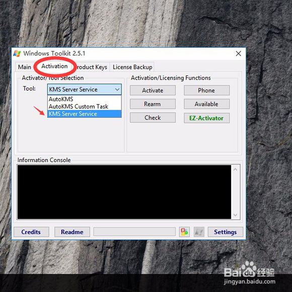 3、選擇Activation,然后在Tool下選擇KMS Server Service,tor,