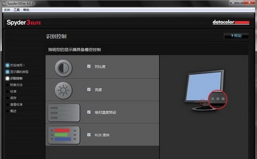 接下來Spyder3ELITE軟件會提示用戶放置Spyder3,不過需要注意的是,由于Spyder3ELITE軟件不是強行居中屏幕,用戶放置Spyder3前需手動把軟件窗口居中屏幕。