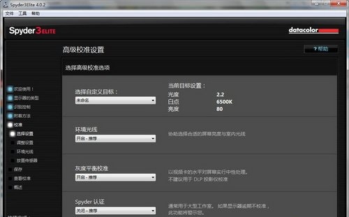 在這里主要選擇自定義目標(biāo),即目標(biāo)色域,一般使用sRGB;環(huán)境光線主要測量周邊環(huán)境的光線狀況,進(jìn)而推薦亮度、色溫,而非I1系列上的環(huán)境光補償。