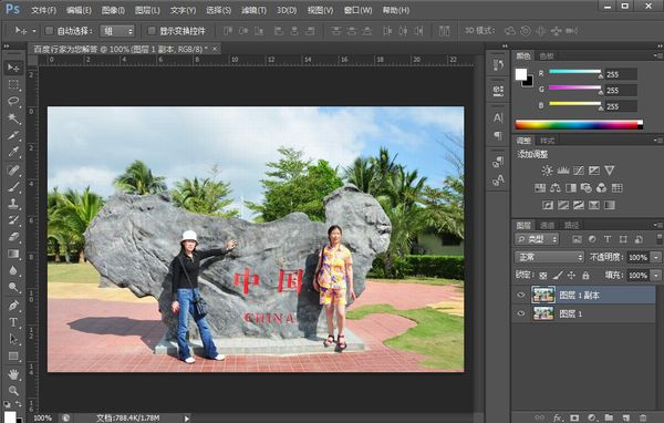 2、然后,按”Ctrl+J“將圖層 1復制到新的圖層,變?yōu)閳D層 1 副本 。