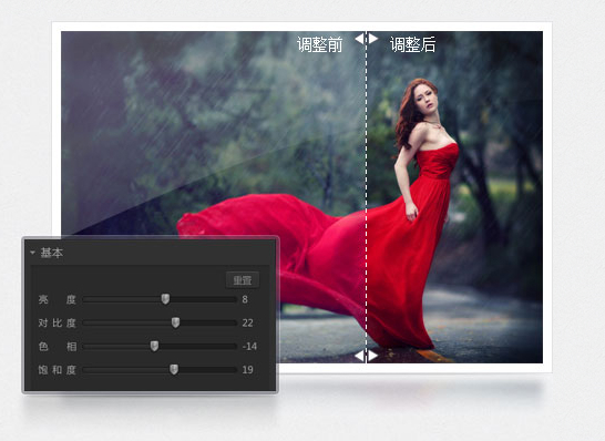 還在羨慕他人多變的照片風格嗎?沒關系,光影魔術手擁有多種豐富的數(shù)碼暗房特效,如Lomo風格、背景虛化、局部上色、褪色舊相、黑白效果、冷調(diào)泛黃等,讓您輕松制作出彩的照片風格,特別是反轉(zhuǎn)片效果,光影魔術手最重要的功能之一,可得到專業(yè)的膠片效果。