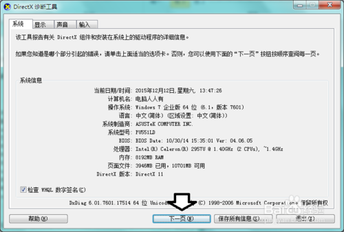 就能打開(kāi)DirectX診斷工具了,注意當(dāng)前的版本(有些游戲會(huì)挑剔)。