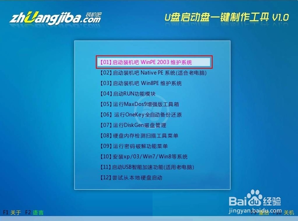 2、進(jìn)入裝機(jī)吧WinPE 2003維護(hù)系統(tǒng)