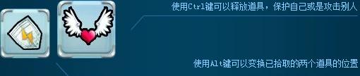 使用Ctrl鍵可以釋放道具,保護(hù)自己或是攻擊別人。使用Alt鍵可以變換已拾取的兩個(gè)道具的位置。