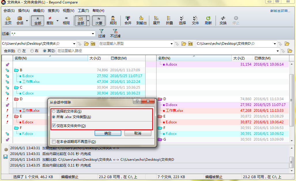 文件夾合并Beyond Compare怎么排除表格?