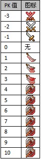 玩家名字版前面用小圖標表示玩家當前的PK殺氣值,圖標與具體值的對應(yīng)關(guān)系如下表: