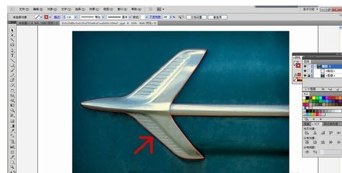 第四步,使用鋼筆工具圍著想要的圖案勾勒一次,本次目標(biāo)是圖案中的飛機(jī),紅色箭頭所顯示的就是已經(jīng)勾勒完的情形。