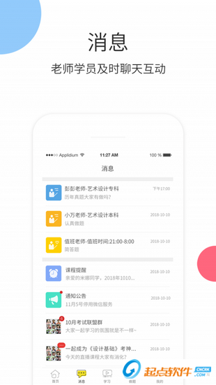 用戶可以在平臺內(nèi)與我的班主任、值班老師 以及機器人,隨時隨地發(fā)起在線聊天,專業(yè)的學(xué)習(xí)指導(dǎo)讓你的學(xué)習(xí)更加舒心