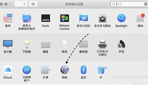 在系統(tǒng)偏好設置中點擊打開“網絡”選項,如下圖所示:
