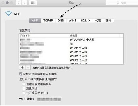 隨后在網絡屬性窗口中點擊頂部的“DNS”欄目,如下圖所示: