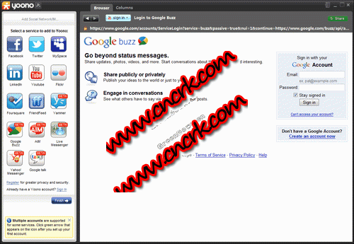 Yoono Desktop是一個非常強(qiáng)大的社會化應(yīng)用,它將常用的網(wǎng)絡(luò)社會化工具集成在了一起,包括 twitter、facebook、flickr、gmail、msn、aim、myspace、linkedln、friendfeed、 yahoo!messenger等等