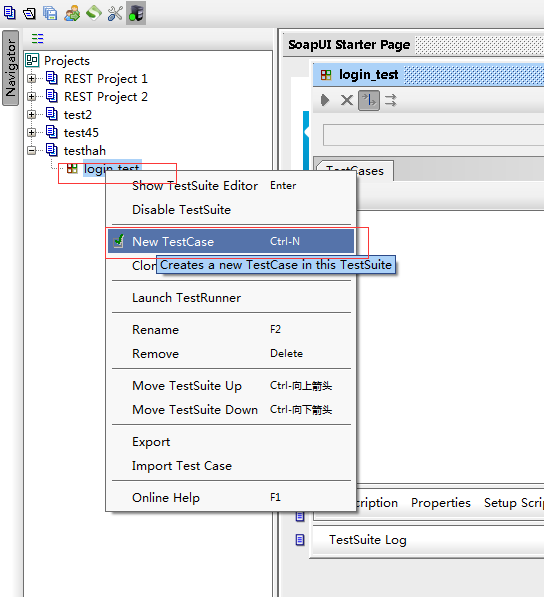 b、創(chuàng)建測試用例,選中測試組名稱右鍵新建測試用例,如下圖: